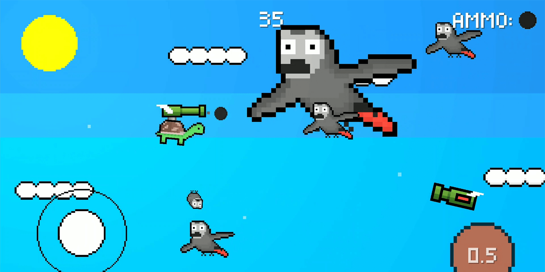Turtle Blast is a mobile video game I developed for fun during the COVID-19 epidemic. During 2020, I have focused on building mobile video games and Turtle Blast was one of them. It is a 2D shooter game with 5 different enemies, 4 different powerups, and 3 different weapons to choose from. It includes a day/night cycle during the game and has a variety of skins. It also has an ad system where watching an ad allows the player to try again with the same score once. The game is currently available on the Google Play Store for free and has over 1000 downloads.